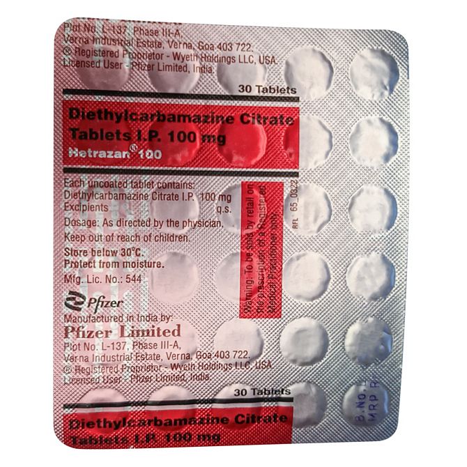 Диэтилкарбамазин Хетразан :: Hetrazan 100 мг таб. блистер №30 в Новосибирске и области