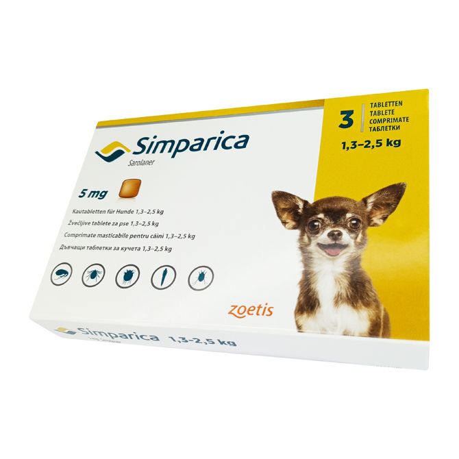 Симпарика для собак 5мг 1,3-2,5кг ГЕРМАНИЯ! таб. для пер. пр. N3 в Новосибирске и области